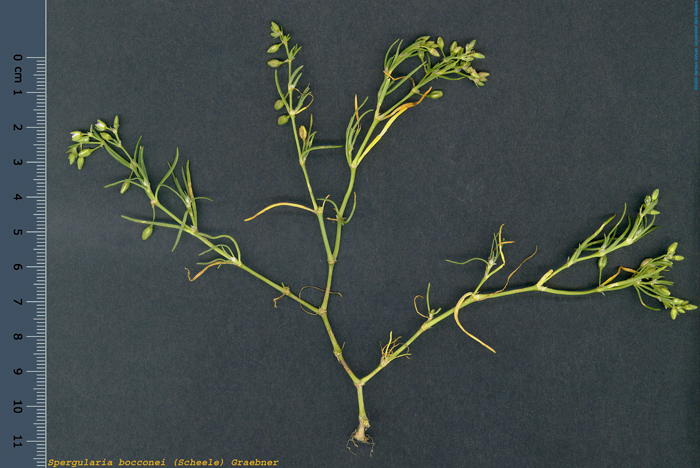 Spergularia bocconei, frutti e semi (Erbario L. Poggiani), Porto di Fano, maggio 1973