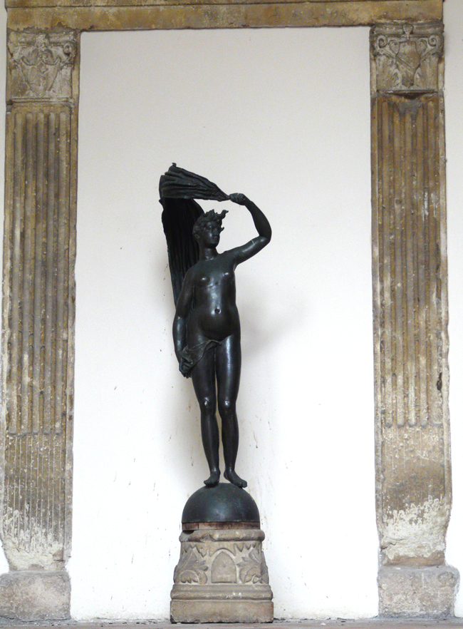 Statua della Fortuna, scalone di accesso al Museo Civico di Fano, gennaio 2010. Opera di Donnino Ambrosi, fu eseguita nel 1593