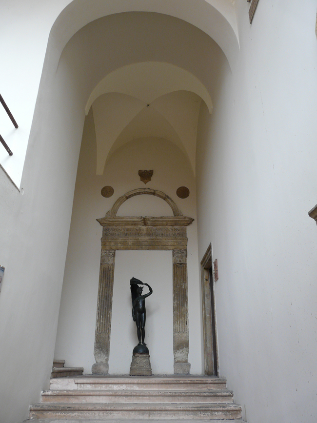 Statua della Fortuna e Portale di S. Maria dei Piattelletti, scalone di accesso al Museo Civico di Fano, gennaio 2010