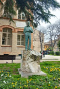 Statua dello scrittore Fabio Tombari, Giardino di Piazza Amiani a Fano, marzo 2025