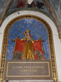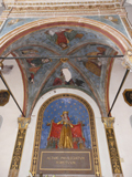 Statua della Madonna della Misericordia e volta del baldacchino. Chiesa di S. Maria della Misericordia a Cagli, marzo 2010