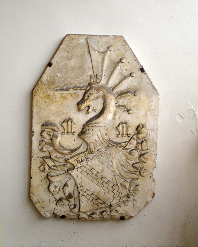 Stemma dei Malatesta sullo scalone di accesso al Museo Civico di Fano, gennaio 2010