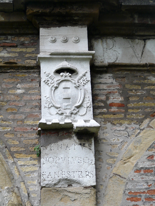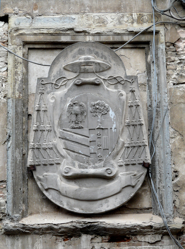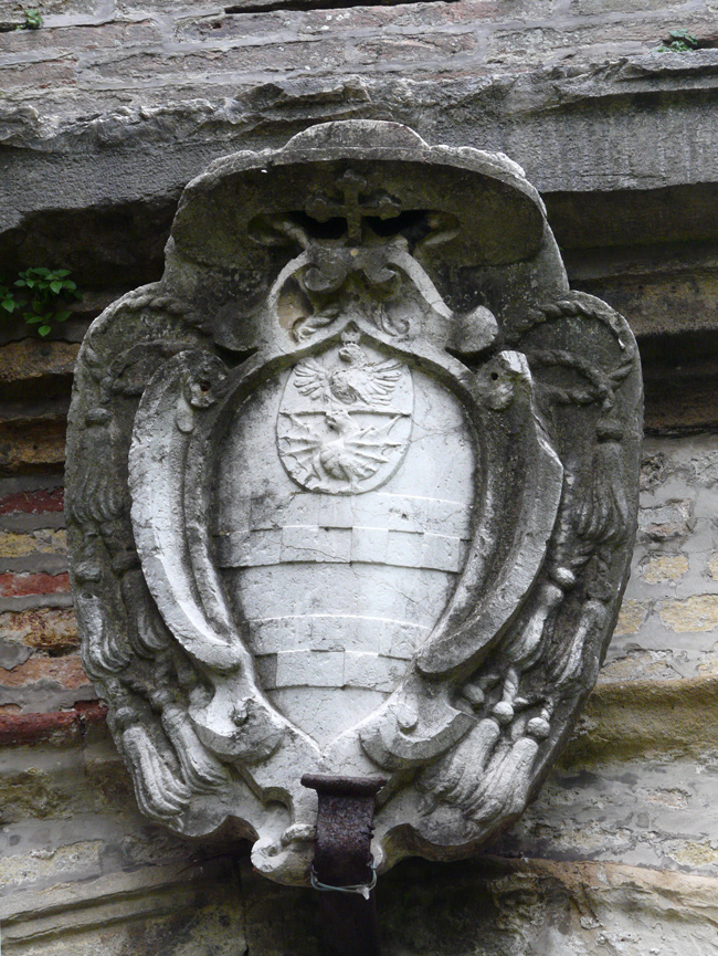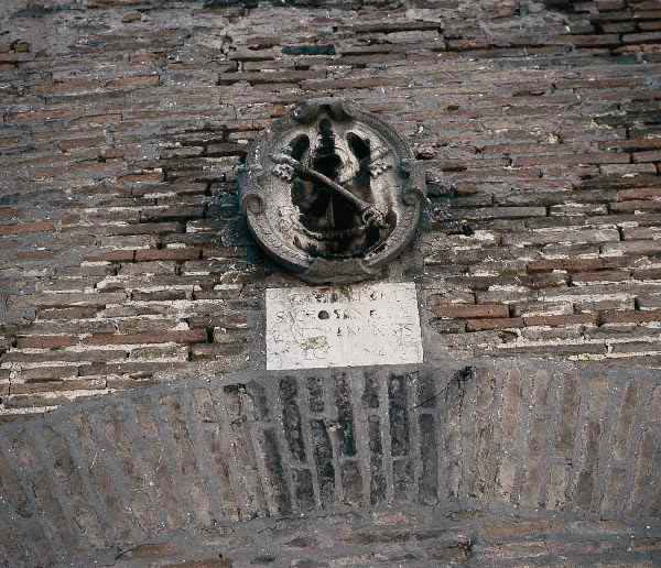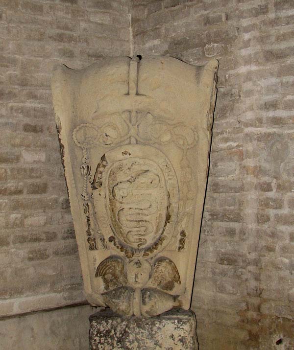 Stemma un tempo presente a Porta Giulia, attualmente depositato nel cortile della Biblioteca Federiciana di Fano, agosto 2007