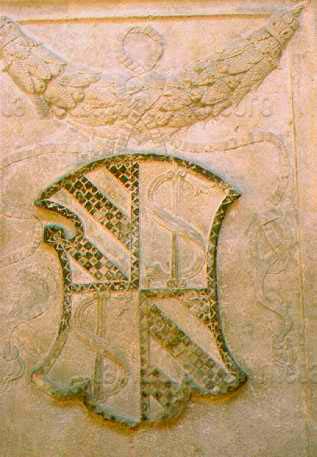 Stemma sulla tomba di Pandolfo III nella chiesa di S. Francesco a Fano, luglio 1999