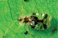 Stephanitis lauri sulla pagina inferiore di una foglia di Alloro (Laurus nobilis), area verde di Casa Archilei alla periferia di Fano, maggio 2023
