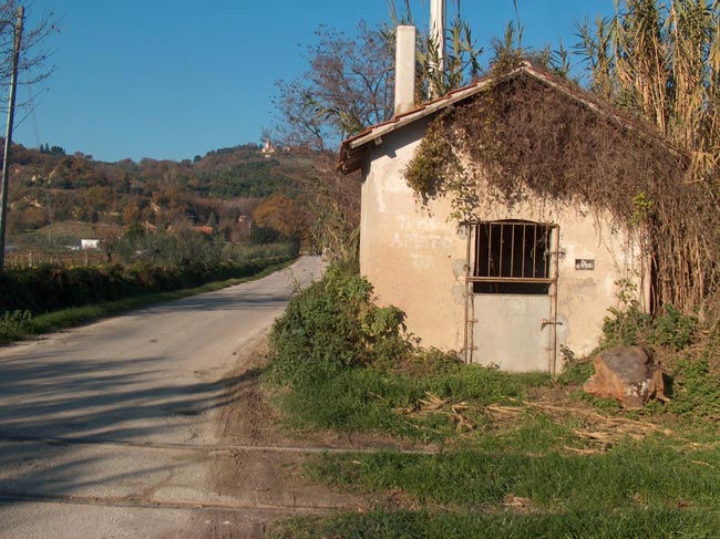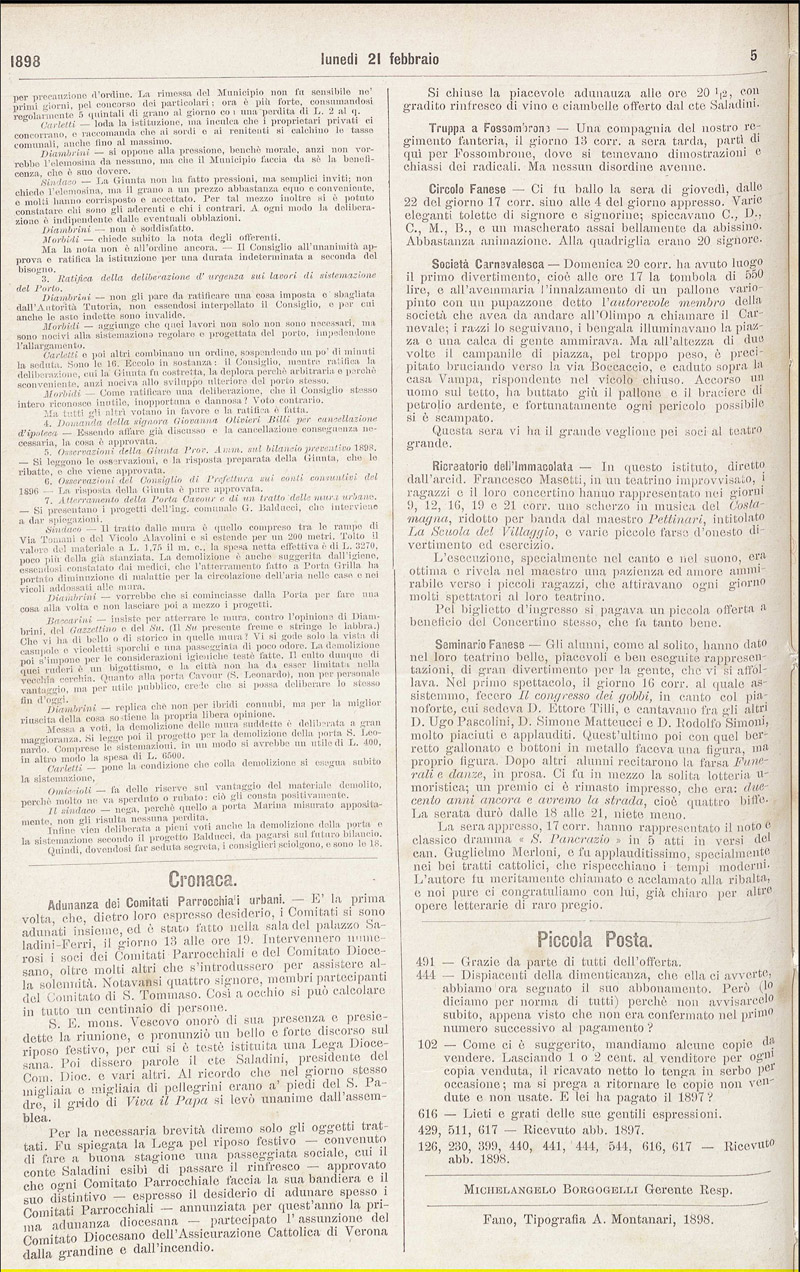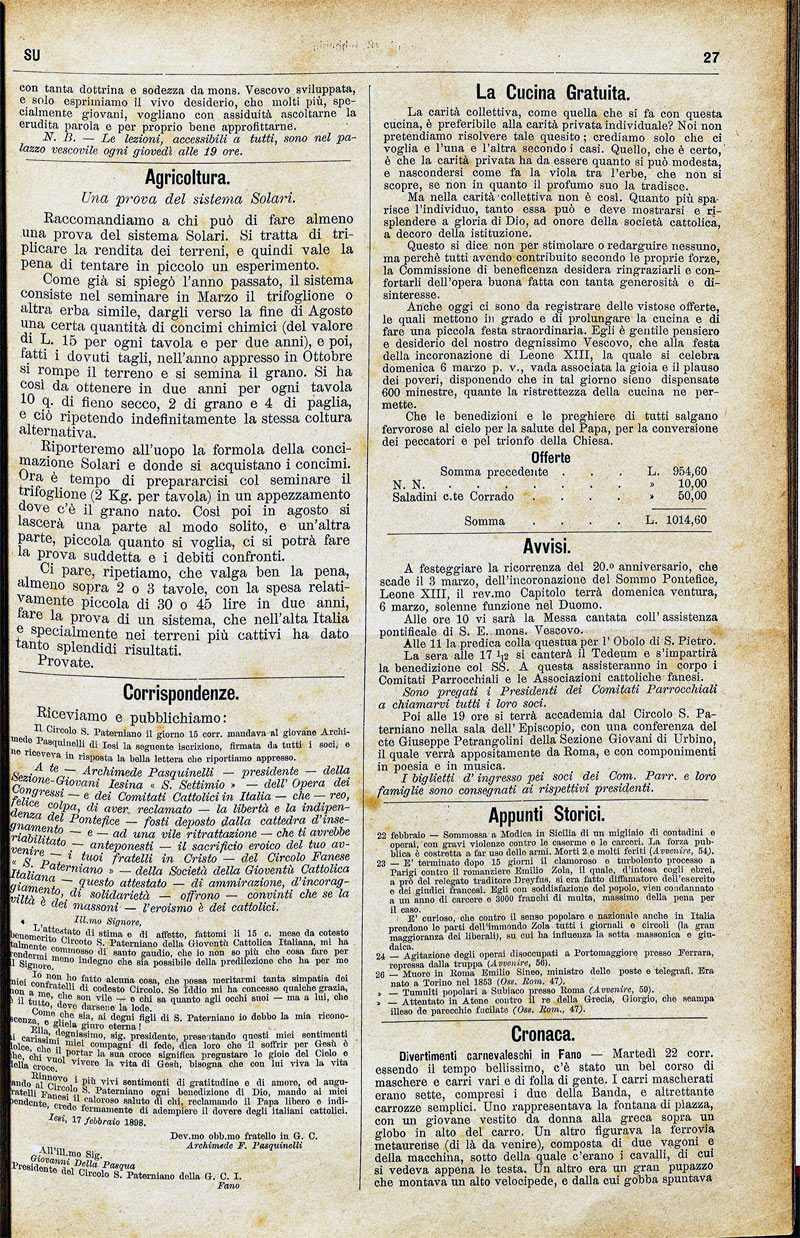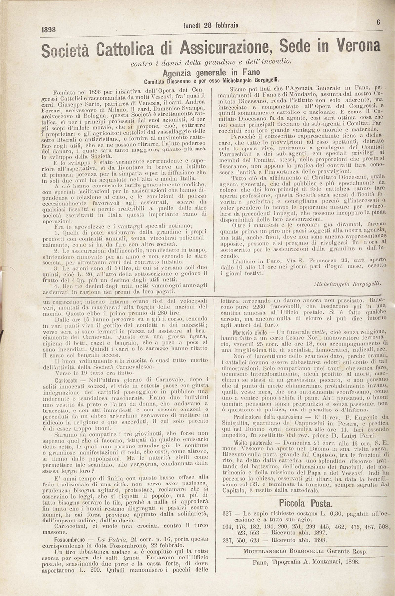 Studio dell'assetto viario romano di Fanum sulla base della carta catastale del 1818 e dei ruderi ritrovati (da BATTISTELLI e DELI 1983). a - via Flaminia; b - Arco d'Augusto e decumano massimo; c - Porta delle mura della Mandria; d - cardo massimo (ipotizzato); e - Fortezza Malatestiana; f - Scuola Gandiglio; g - mura lungo via Garibaldi; h - piazza XX Settembre; i - corso Matteotti; l - S. Pier Vescovile; m - Cattedrale; n - isolato del S. Arcangelo. Rinvenimenti archeologici: 1 - via Montevecchio, mosaico; 2 - via Montevecchio, mosaico della pantera; 3 - via Montevecchio, reperti inesplorati; 4 - Duomo e via Rainerio; 5 - piazza XX Settembre; 6 - Palazzo Bambini e Cassa di Risparmio; 7 - piazza A. Costa; 8 - piazza Avveduti; 9 - Ist. Maestre Pie Venerini; 10 Politeama C. Rossi; 11 - piazza P.M. Amiani; 12 - via De Amicis; 13 - ex Seminario Vescovile, S. Agostino, ex arena Corso; 14 area ex Caserma Montevecchio; 15 - ex filanda Solazzi
