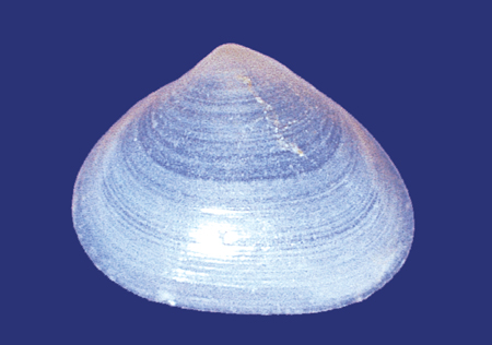 Bornia sebetia di 7 mm (valva destra), spiaggiata alla foce dell'Arzilla (Fano), gennaio 2012
