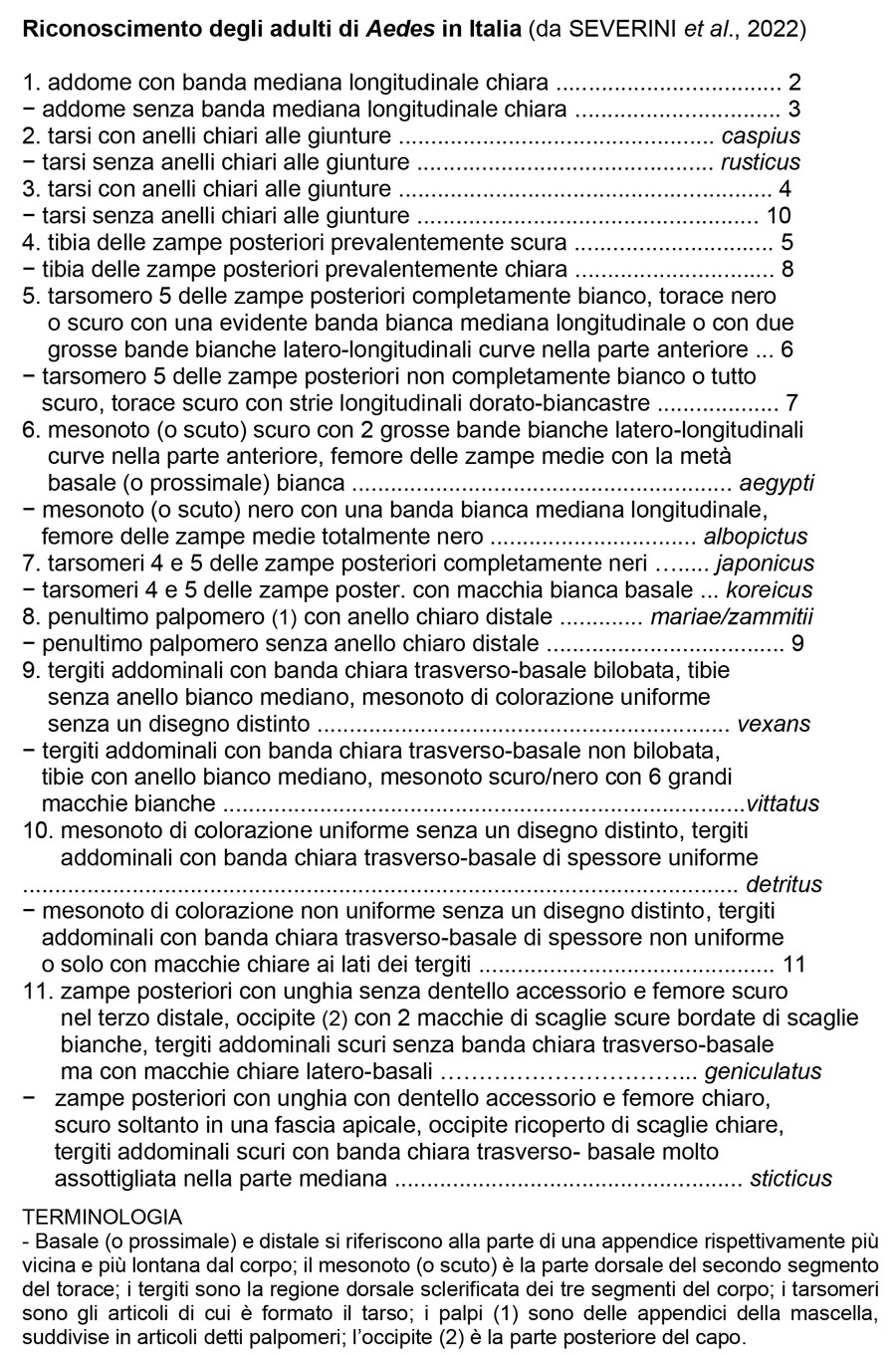 Tavola dicotomica per il riconoscimento degli adulti di Aedes in italia