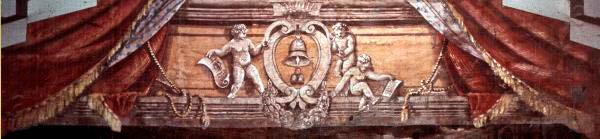 Teatro della Concordia di San Costanzo: parte superiore del sipario (Arlecchino) Foto di:Alfieri P.