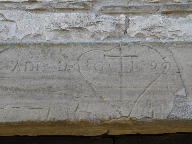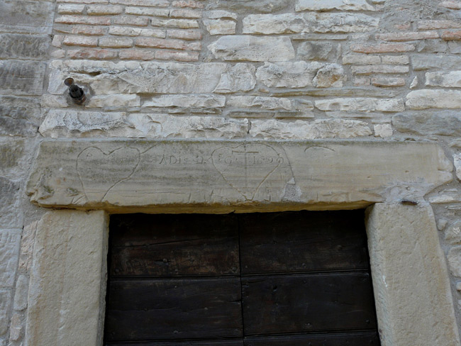 Taverna (Apecchio), scritte su un architrave, con data 1690, marzo 2008 Foto di:Poggiani Luciano