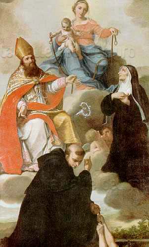 Tela di Pietro Tedeschi del 1791, raffigurante la Madonna della Cintura con Sant'agostino, Santa Monica e San Giovanni di Sahagun (da BELLINI 1997)