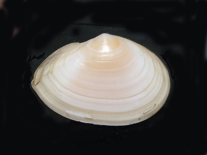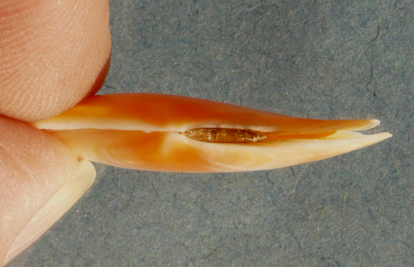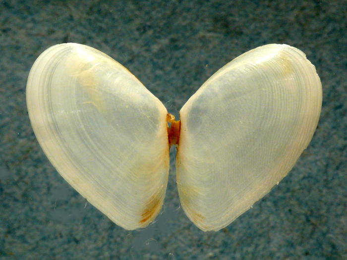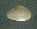 Tellina tenuis di 13 mm (valva sinistra), spiaggiata a Marotta di Fano, dicembre 2011