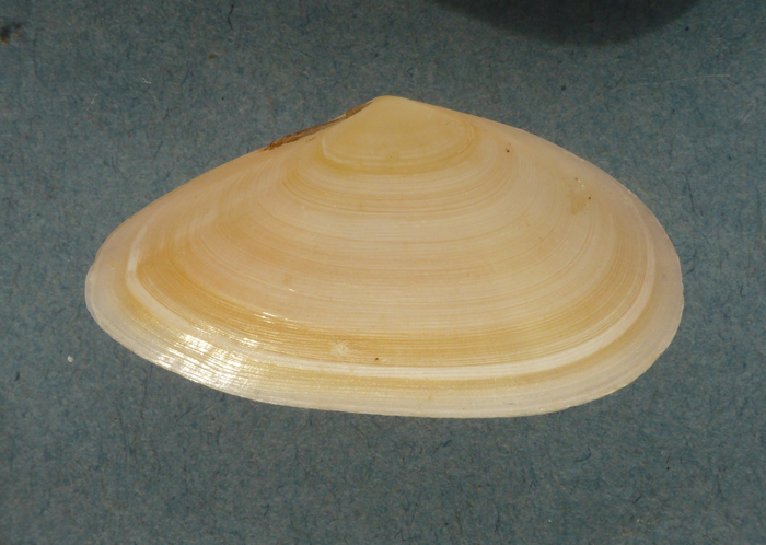 Tellina planata di 58 mm (valva destra), spiaggiata a Torrette di Fano, aprile 2010