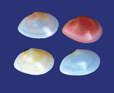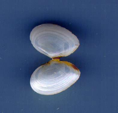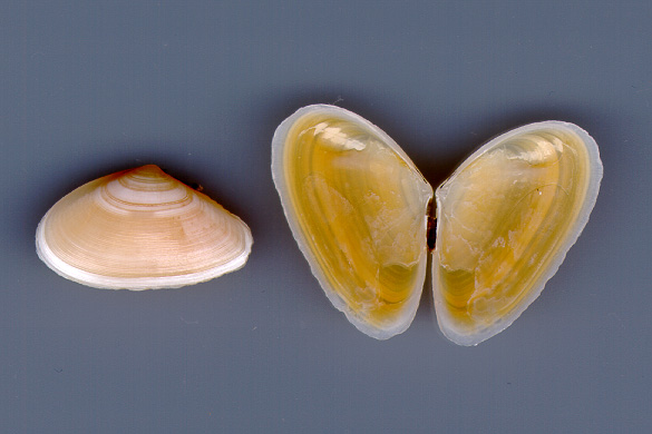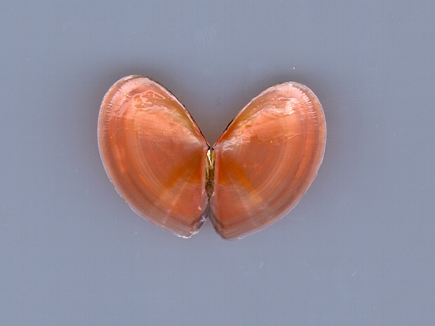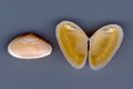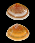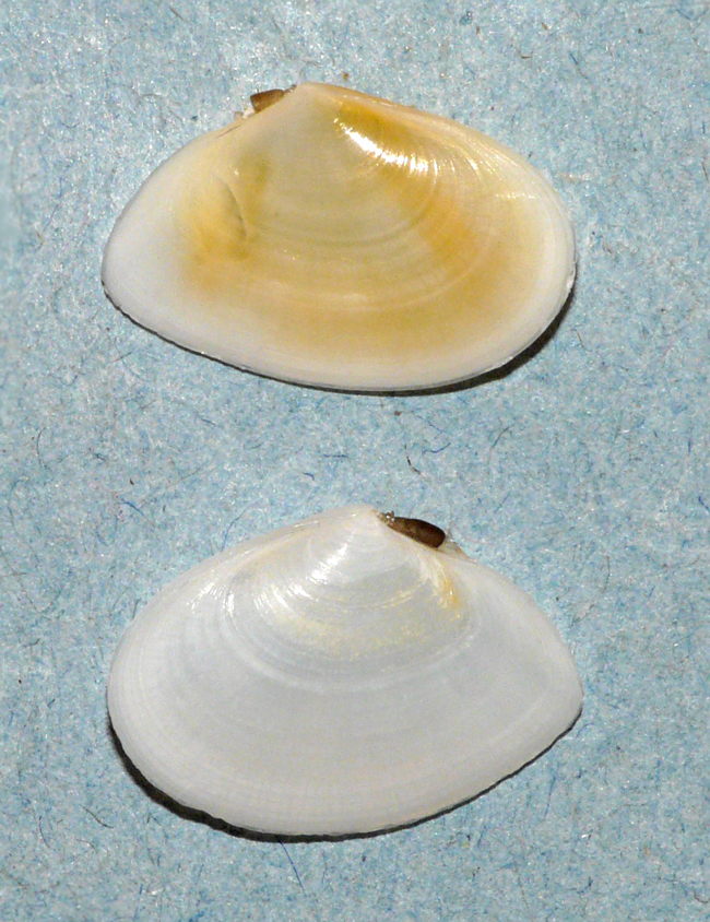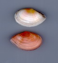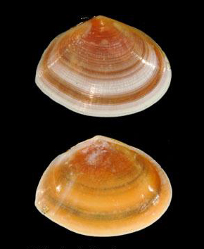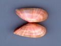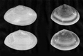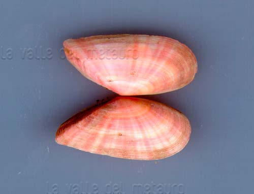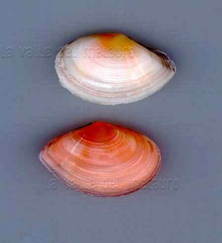 Tellina tenuis (a sinistra) e T. tenuis f. exigua (a destra), valve destre (da: Natural History Museum Rotterdam www.nmr-pics.nl, modificata)