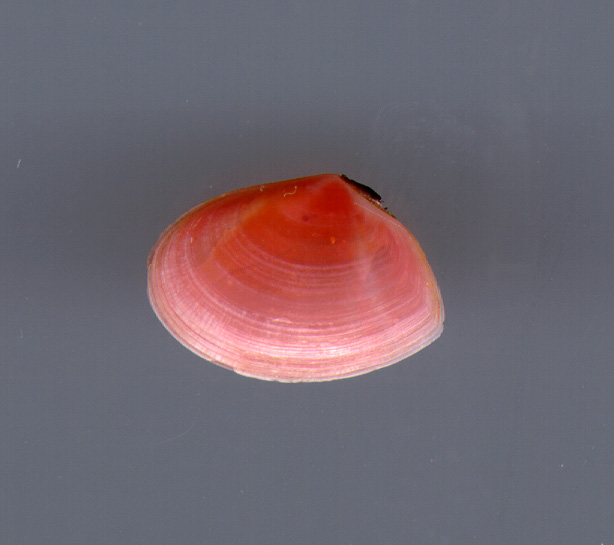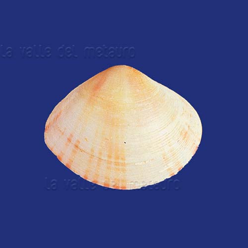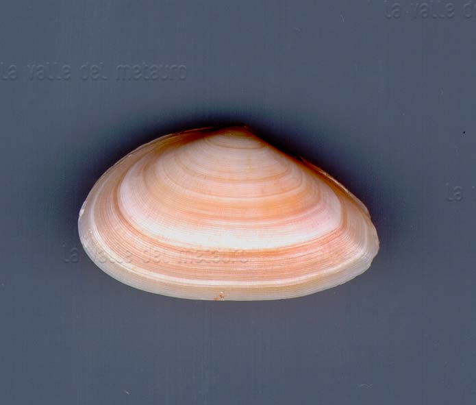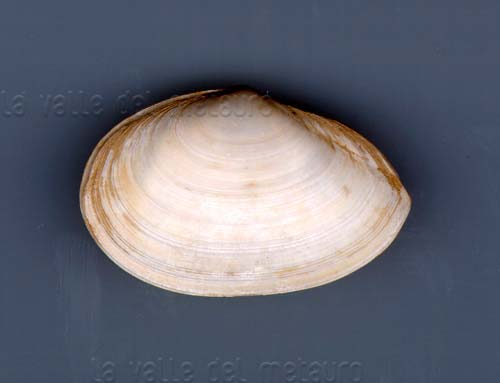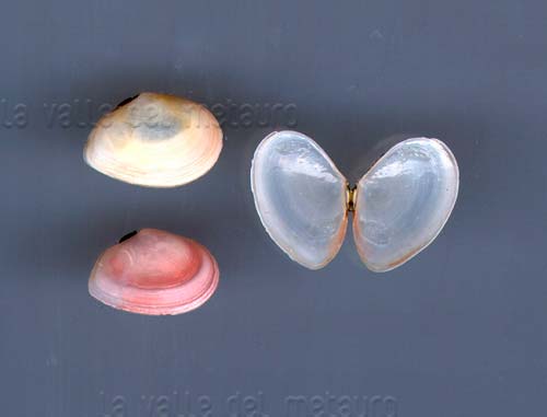 Tellina serrata di 15 mm (valva sinistra), al largo di Pesaro a 60 m di profondità, luglio 1988