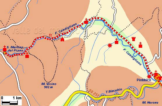 Territorio lungo il Metauro tra Montemaggiore e Tavernelle di Serrungarina (da BALDELLI et al. 1994)