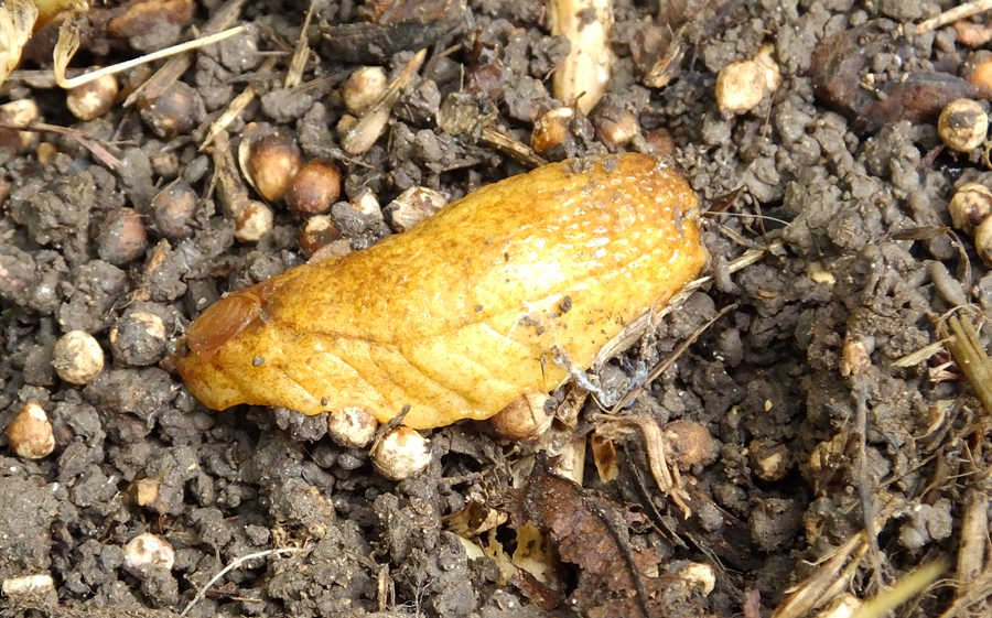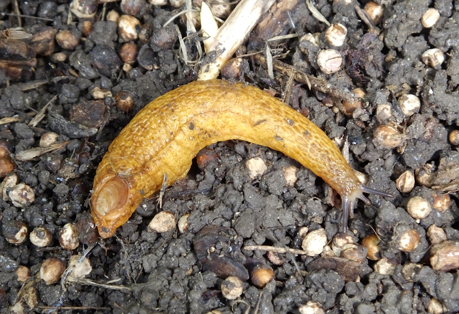 Testacella cf. scutulum in posizione contratta, sotto un tronco marcescente in un giardino alla periferia di Fano, aprile 2023