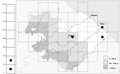 Testuggine palustre americana - Carta di distribuzione in Provincia di Pesaro e Urbino, 2002. Legenda: cerchio grande = 7 e più rilevazioni dal 1980; cerchio medio = 4-6 rilevazioni; cerchio piccolo = 1-3 rilevazioni; quadrato = dato anteriore al 1980; triangolo = dato fuori dei confini della Provincia. Nel grafico altitudinale: cerchio grande = 15 e più rilevazioni; cerchio medio = 5-14 rilevazioni; cerchio piccolo = 1-4 rilevazioni. Ulteriori notizie nella scheda: Come leggere le schede dei Rettili