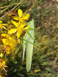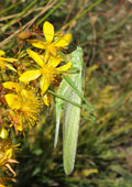 Tettigonia viridissima su Hypericum perforatum, sommità verso N.E. del M. Petrano, luglio 2013