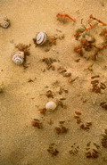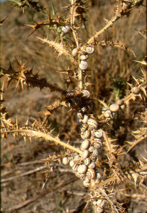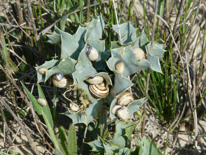 Theba pisana su Eringio marino, spiaggia di Baia del Re a Fano, maggio 2009
