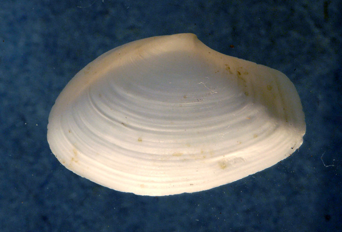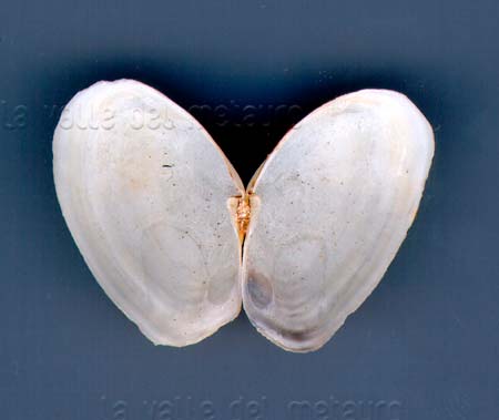 Thracia papyracea di 18 mm (valva sinistra), spiaggiata a Fano, novembre 2011