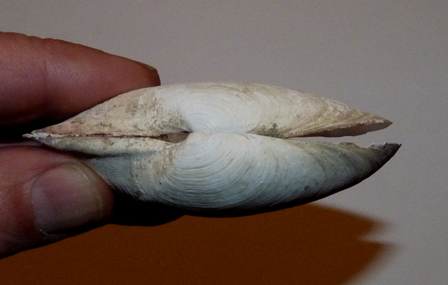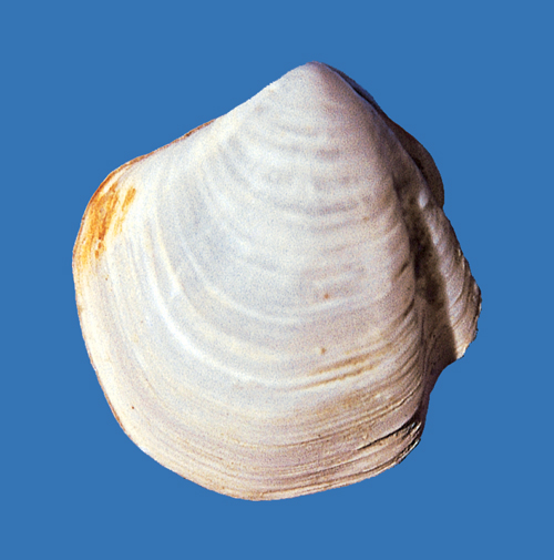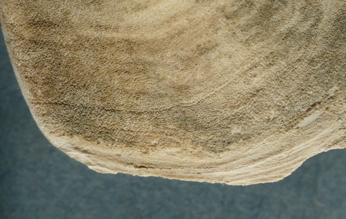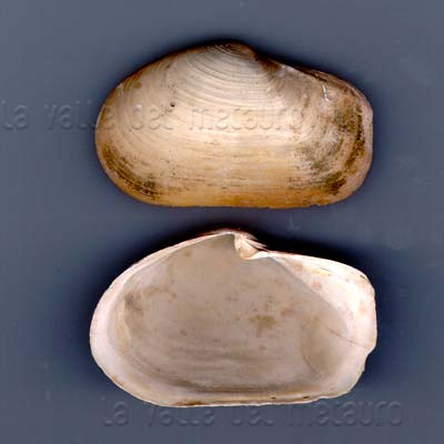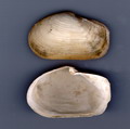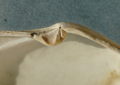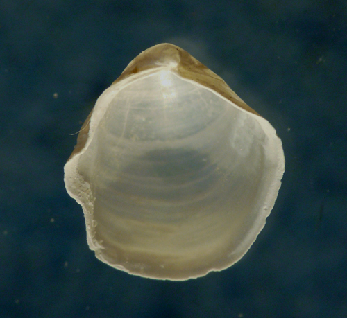 Thyasira biplicata di 6 mm (interno valva sinistra) al largo di Fano a 54 m di profondità, marzo 2004