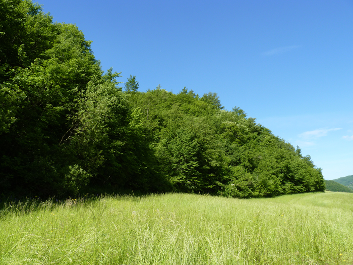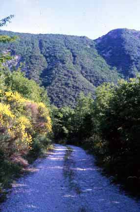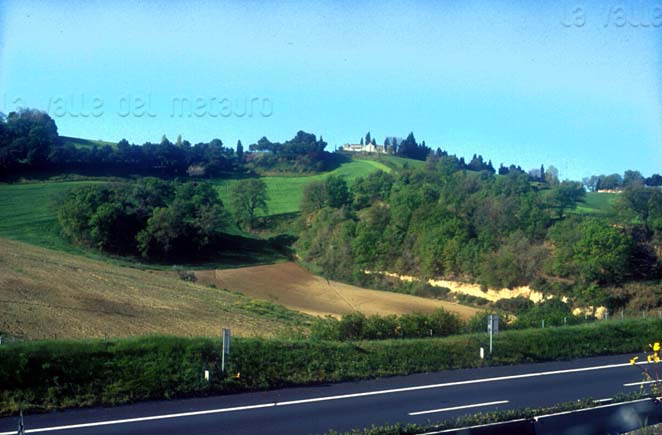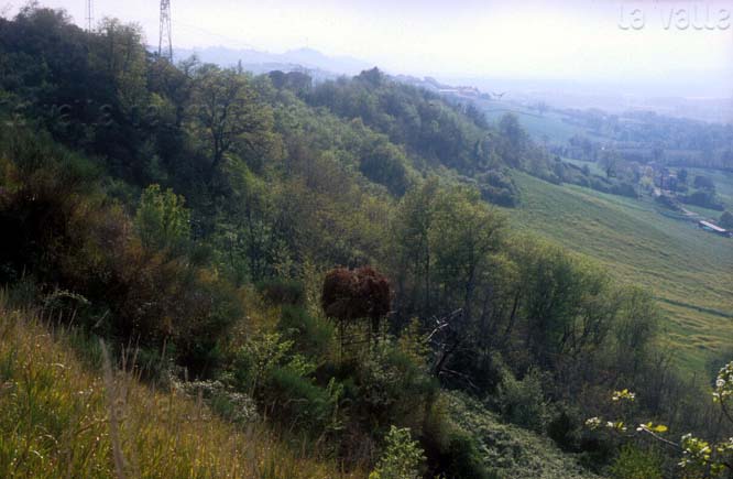 Boscaglia e cespuglieto di Fonte Caprile (Fano), luglio 1987; sul crinale è visibile Casa S. Elia