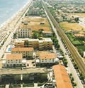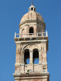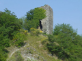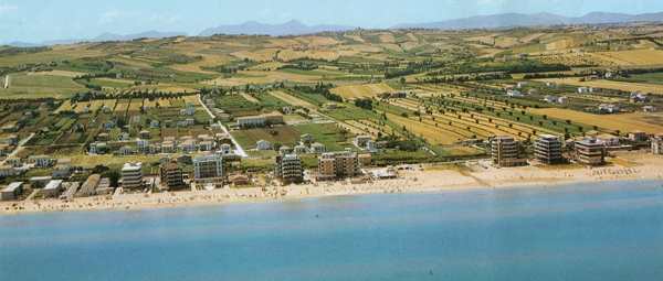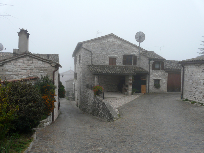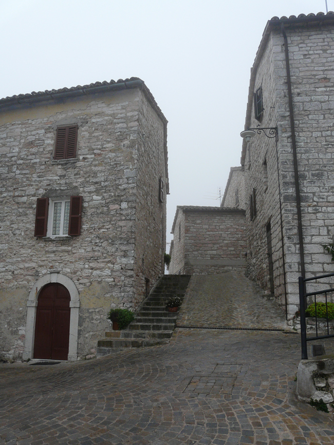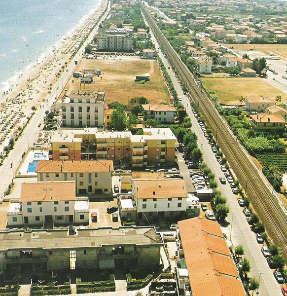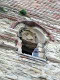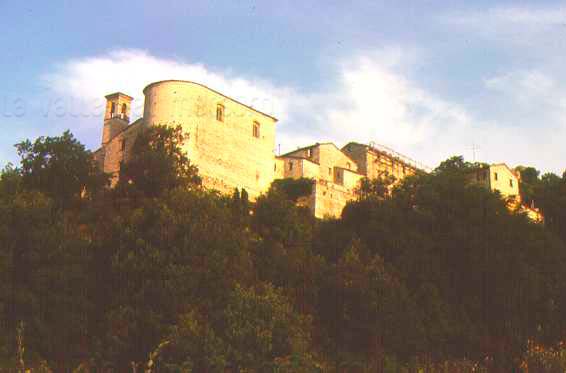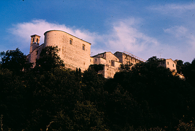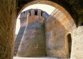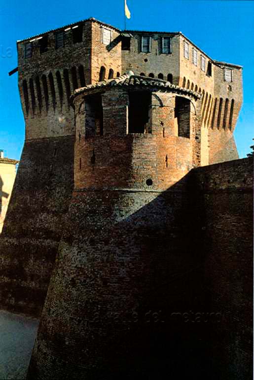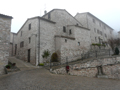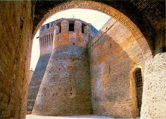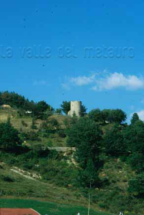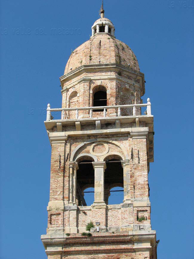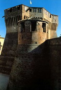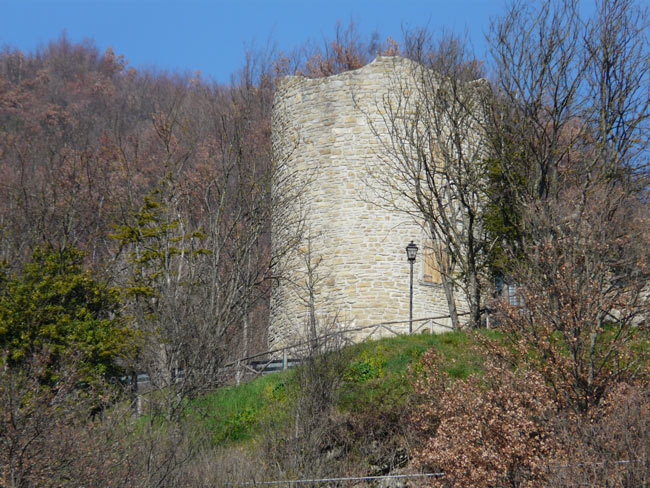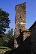 Torre di S. Elena, con sulla destra il loggiato della Chiesa e Ospedale di S. Croce, prima del 1944 (da AMADUZZI e LAMEDICA 1984)