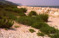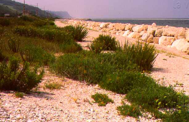 Tratto ghiaioso tra Baia del Re e Gimarra (area floristica), luglio 1989. Vegetazione a Critmo ed Enula critmoide