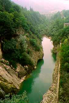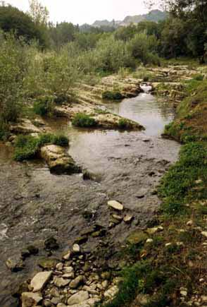 Tratto del Metauro a valle della Cascata del Sasso e Mulino del Sasso a Sant'Angelo in Vado, giugno 2000