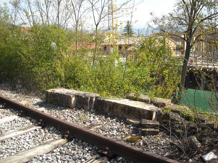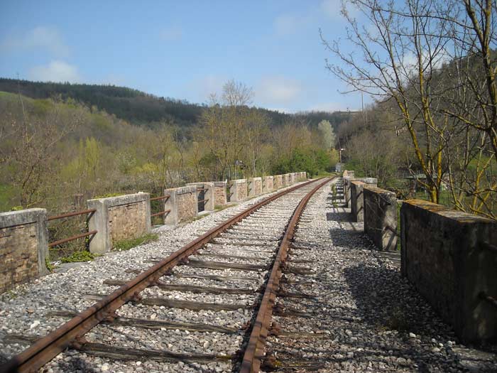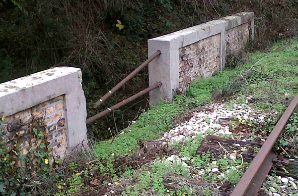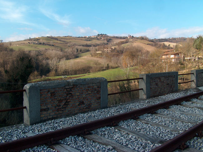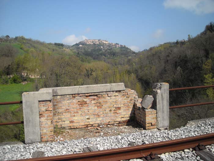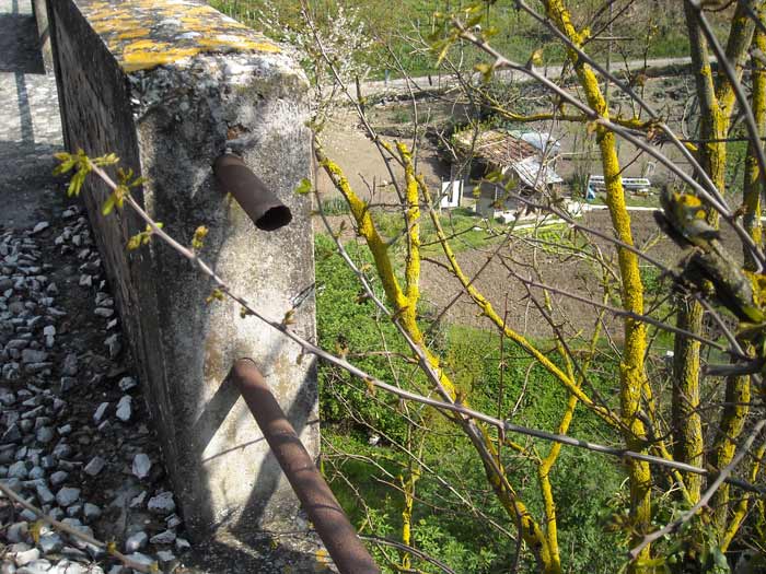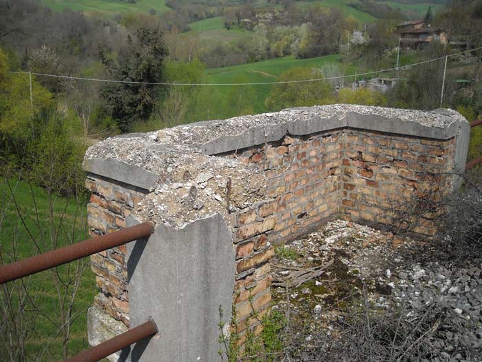Tratto Fermignano - Urbino. Uno dei numerosi parapetti metallici in rovina. Aprile 2010