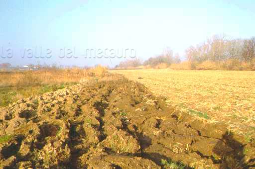 Tratto dell'area dello Stagno Urbani nel 1989 ancora coltivata. In questa fascia nel 1990 verrĂ realizzato un bosco ripariale