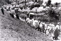 Trasferimento di una trebbiatrice con quattro paia di buoi, dintorni di Urbania, 1940-49 circa