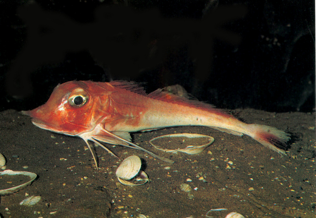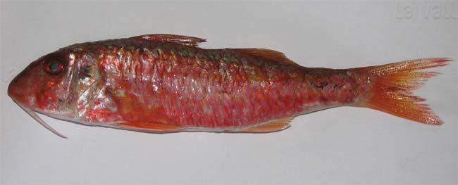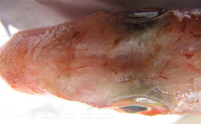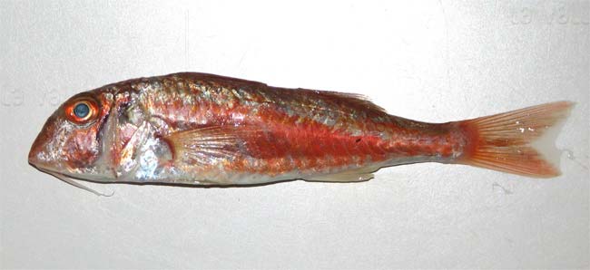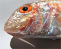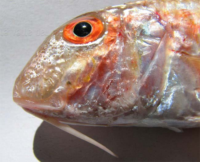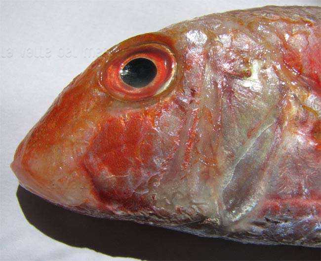 Triglia di fango di 18 cm, particolare della testa con spazio interoculare incavato. Pescherie di Fano, giugno 2006