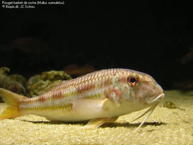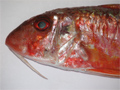 Triglia di fango di 13 cm, particolare della testa. Acque marine al largo di Cattolica, luglio 2006
