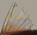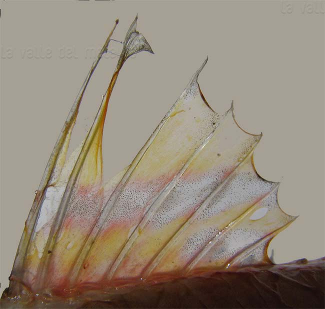 Triglia di scoglio di 21 cm, particolare della prima pinna dorsale. Pescherie di Fano, giugno 2006