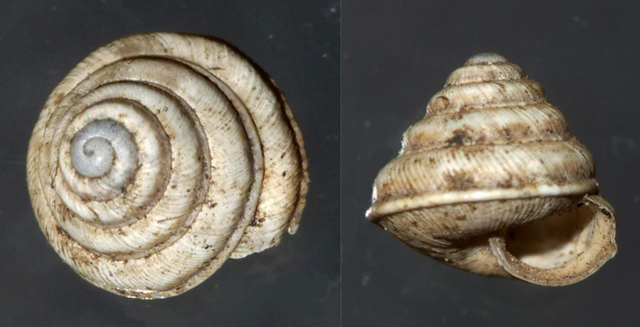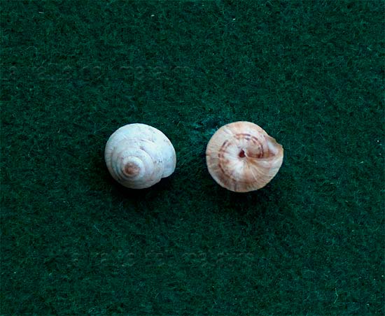 Trochoidea trochoides di 4,5 mm, zona erbosa del Campo d'Aviazione di Fano, agosto 2005