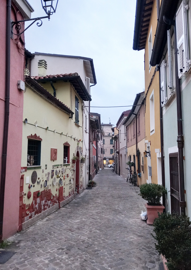 Via Galeotto Malatesta col pontile tra il Palazzo Malatestiano e il Palazzo del Podestà, Fano, gennaio 2010