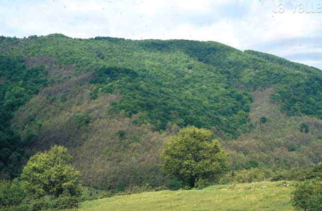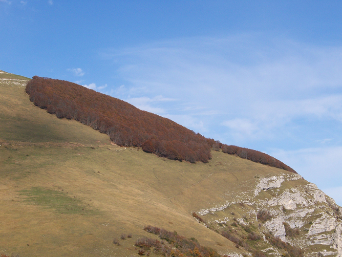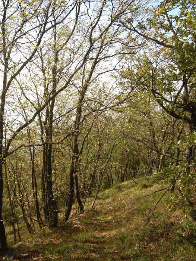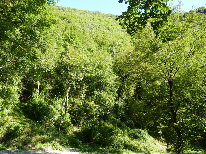 Bosco nella valle del T. Calecchio, zona del M. Catria, settembre 2010. Versante esposto ad Ovest, in territorio umbro