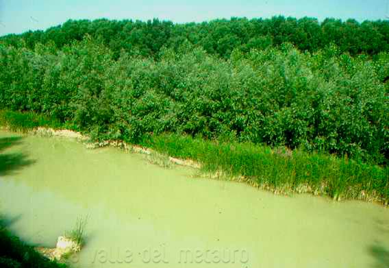 Bosco ripariale a Salice bianco, F. Metauro nel tratto della Torre Romana (Sant'Ippolito), giugno 2005
