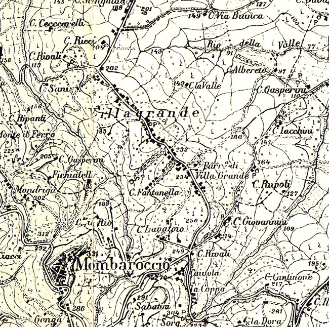 Villagrande di Mombaroccio. Carta IGM 1:25.000 109 II N.E., ricogn. generali 1948 (autorizz. IGM n. 4877 del 2-11-1998)