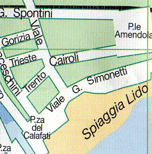 Zona di Viale Cairoli dove era ubicata la fontanella con acqua ferruginosa (da: In viaggio - pianta topografica di Fano)