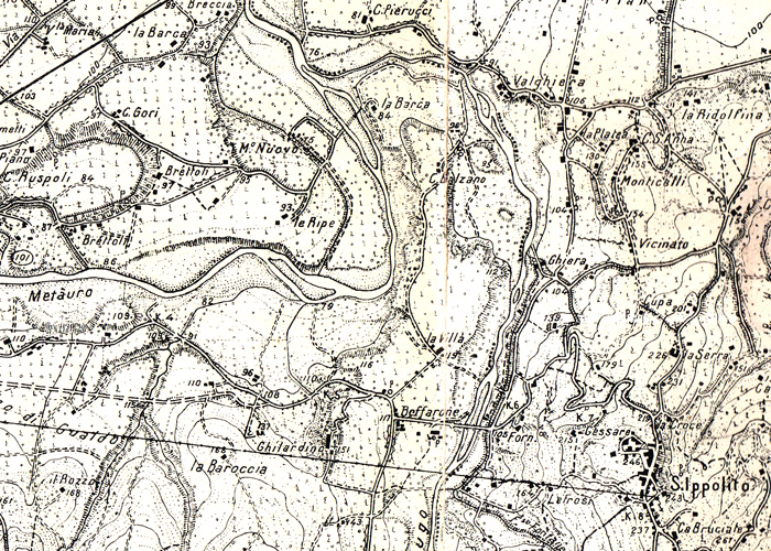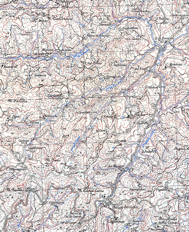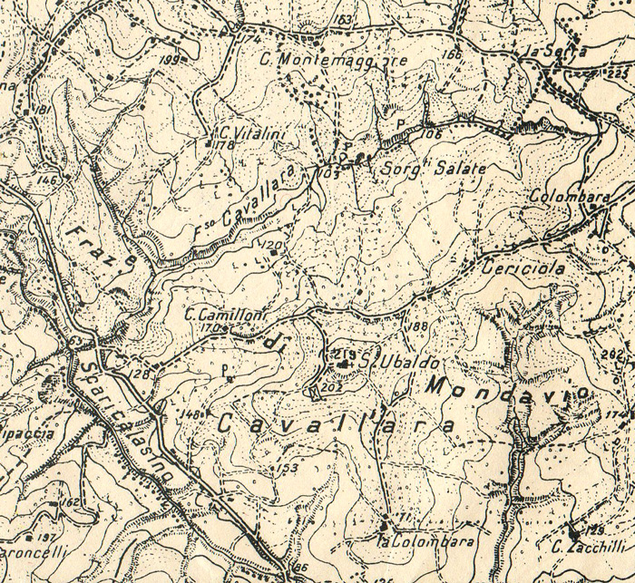 Zona di Cavallara e S. Ubaldo. Carta IGM 1:25.000 109 II S.E., ricogn. 1948 (aut. IGM n. 4877 del 2-11-1998)