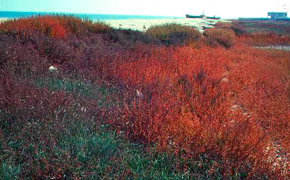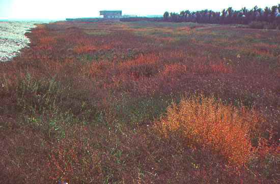 Zona umida alla foce del Cesano, maggio 1975. E' presente Althaea officinalis; sta erborizzando il botanico prof. Brilli-Cattarini