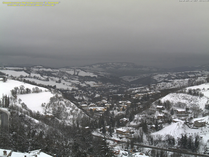 Zona litoranea nel tratto Cattolica-Pesaro, con al centro Monte di Colbordolo, vista da Urbino, 10 marzo 2010. Webcam posta sulla vecchia torretta dell'Osservatorio del Collegio Raffaello in Piazza della Repubblica (da www.uniurb.it/meteo)