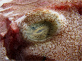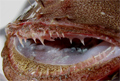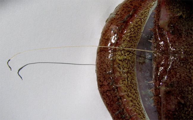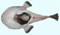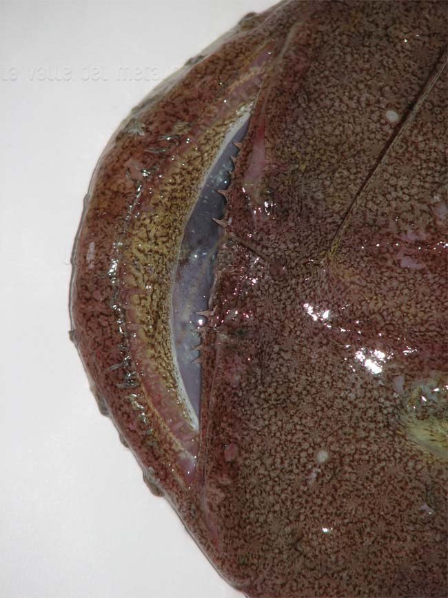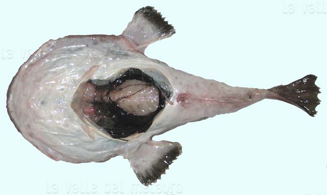 Budego, lato ventrale; E' visibile il peritoneo di colore nero. Pescherie di Fano, maggio 2006