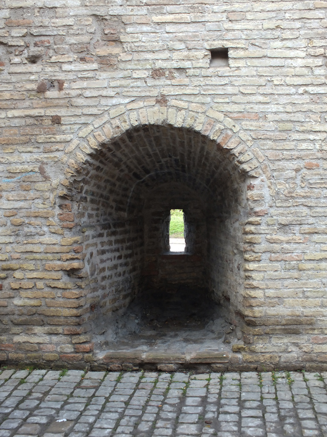 Buca per il tiro di fiancheggiamento, lato interno della Porta Maggiore a Fano, dicembre 2012