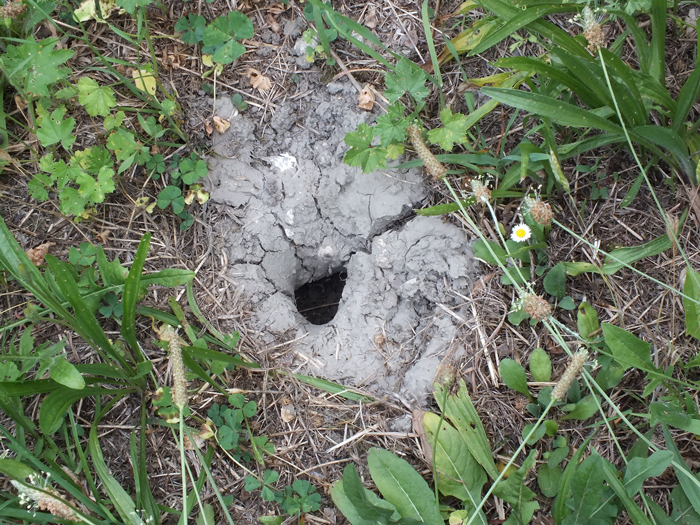 Buca per deporre le uova preparata da una Trachemys scripta (quella della foto precedente), poi abbandonata, Stagno Urbani lungo il F. Metauro a Fano, luglio 2013