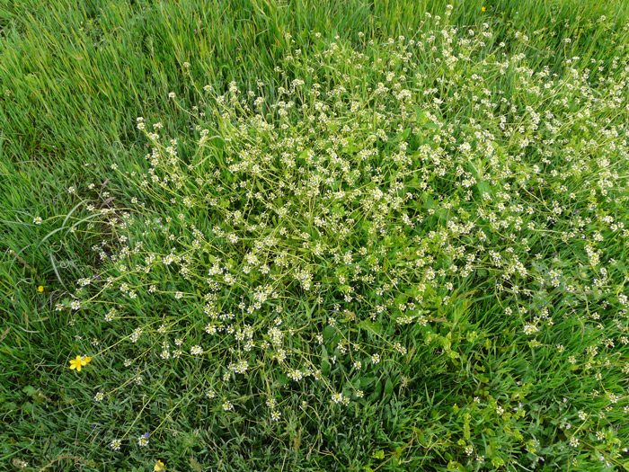 Callitriche palustris, foglie sup. in rosette galleggianti, Friuli-Venezia Giulia, agosto 2003 (foto A. Moro, modif., http://dryades.units.it/floritaly, licenza CC BY-SA 4.0)