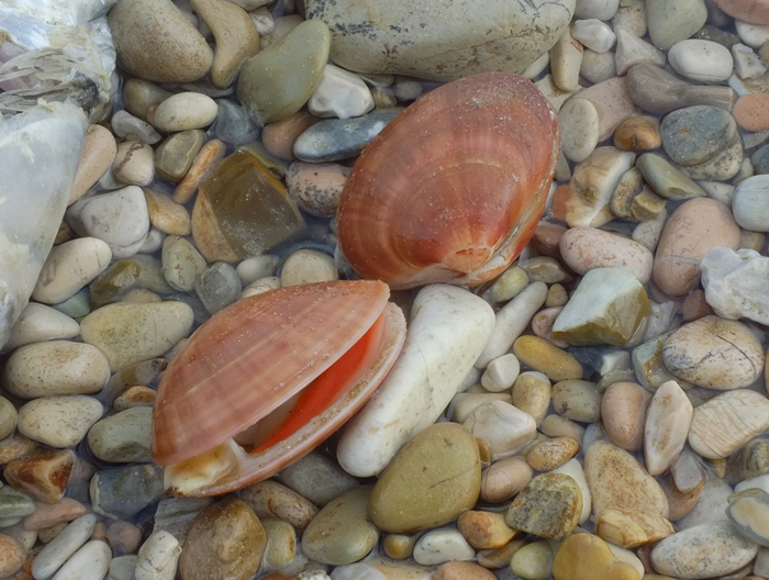 Callista chione, esemplari spiaggiati vivi sulla spiaggia a NE della foce del Metauro, ottobre 2016